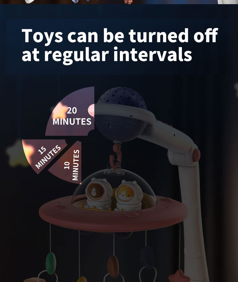 All the magic of the night sky is transferred to your baby’s room, with the Spaceship musical projector. The white sounds and simulation of the night sky will help your baby relax and have the sweetest and most restful sleep. In addition, his toys can be used as rattles and teethers as they are made of safe materials.