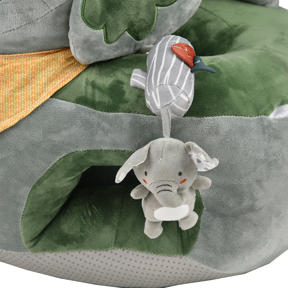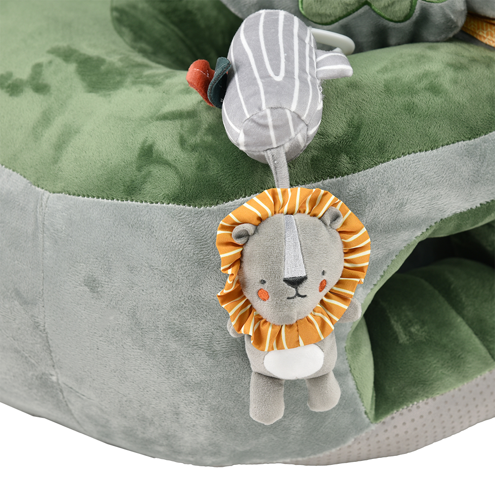 - The first toy in the form of a “seat” that combines comfort, fun and stimulates the baby’s senses.
