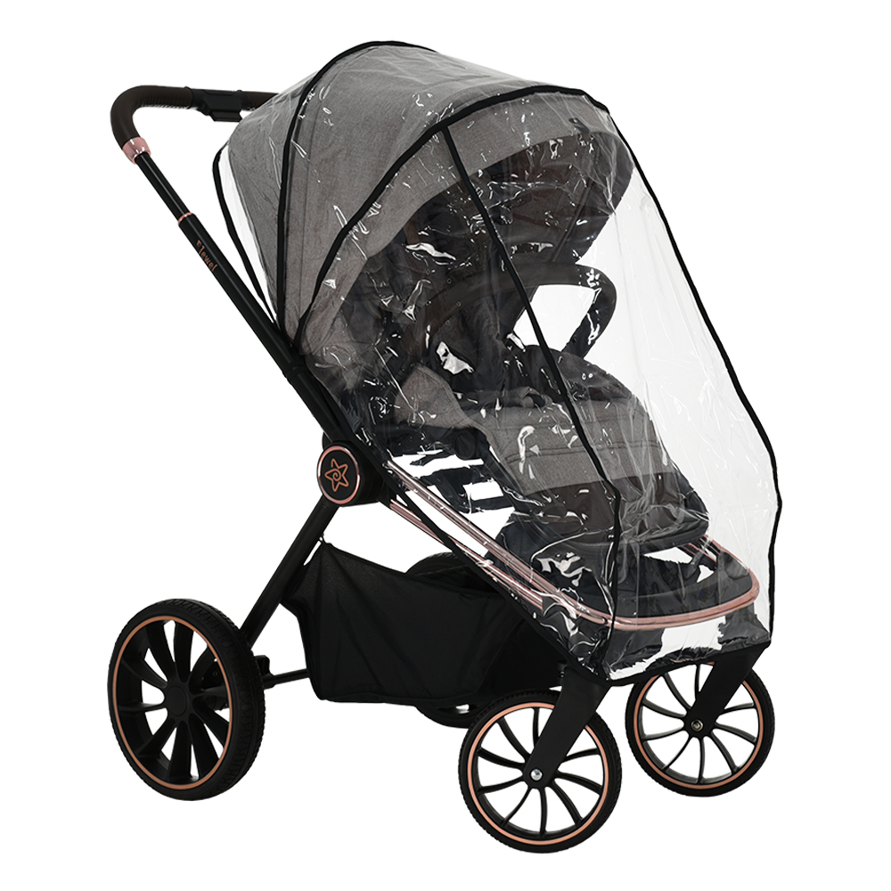 - Περιλαμβάνει ποδόσακο και αδιάβροχο, τα οποία προστατεύουν το παιδί από το κρύο και τη βροχή.