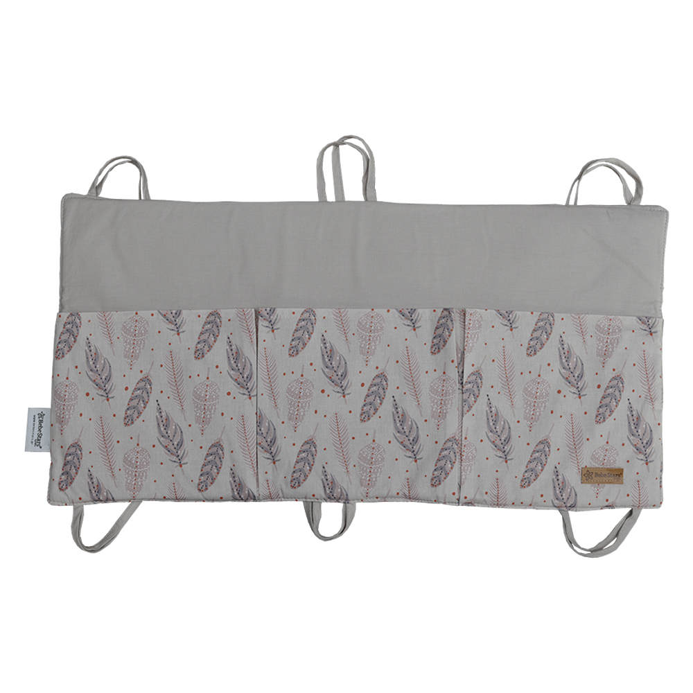 Οργανωτής κρεβατιού σε μοντέρνο σχέδιο από την Bebe Stars με 3 θήκες για ένα μοναδικό και στυλάτο παιδικό δωμάτιο. Για εξοικονόμιση χώρου κρεμάστε τη θήκη στα κάγκελα του κρεβατιού και αποθηκεύστε τις πάνες, τα μωρομάντηλα, ακόμα και τα αγαπημένα παιχνίδια ύπνου του μωρού, ώστε να είναι τακτοποιημένο το κρεβατάκι και το δωμάτιο του. Βοηθάει κάθε νέα μητέρα να έχει κοντά της και τακτοποιημένα τα αντικείμενα που χρειάζεται για την καθημερινή φροντίδα των παιδιών της. Εύκολο κρέμασμα με κορδελάκια.