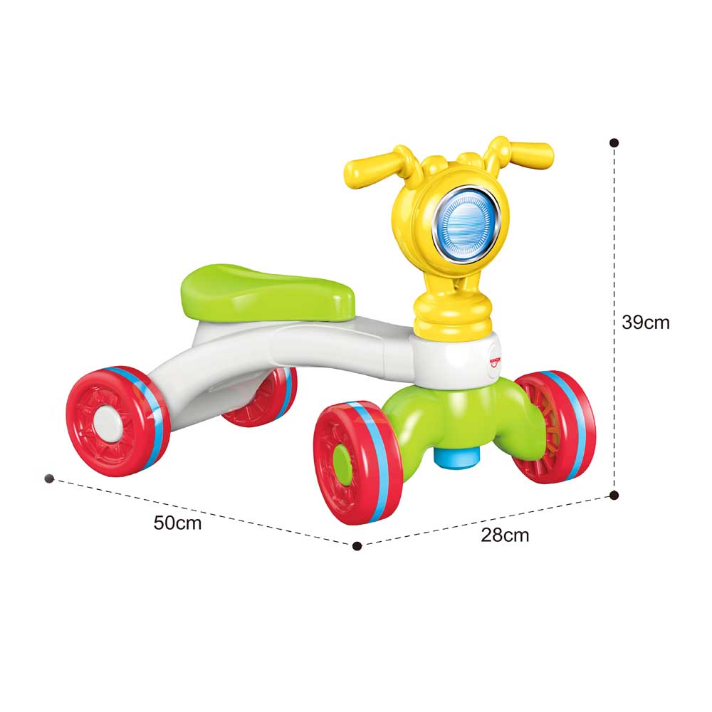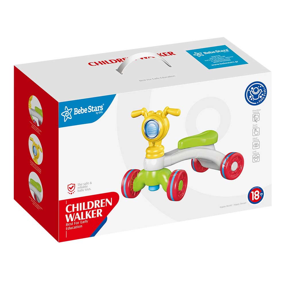 - Δίνει την δυνατότητα στο παιδί να κάτσει πάνω του και να μετακινηθεί στο χώρο χρησιμοποιώντας τα πόδια του, καθώς και να στηριχτεί στο τιμόνι ώσπου να καταφέρει να σταθεί όρθιο προκειμένου να περπατήσει.